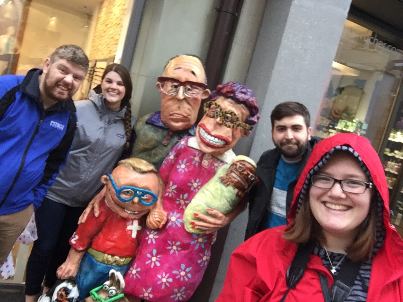 We explored the streets, shopped in the local stores, tasted chocolate, and posed for several selfies with statues.