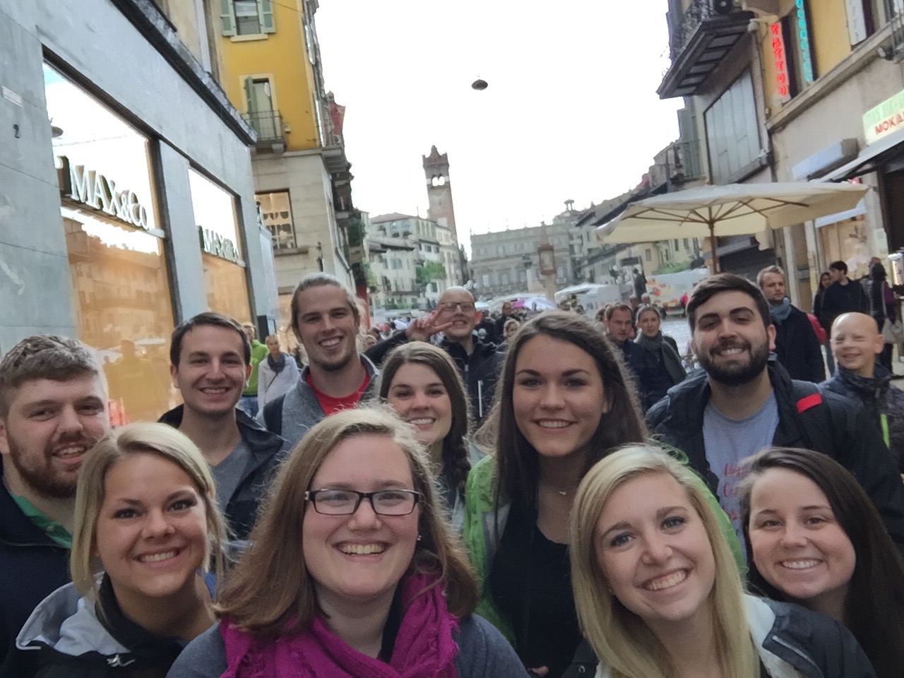 Stopping in Verona for a few hours, everyone unloaded from the bus. To our dismay, the dark clouds brought a thunderstorm, trapping us in the underground street crossing.