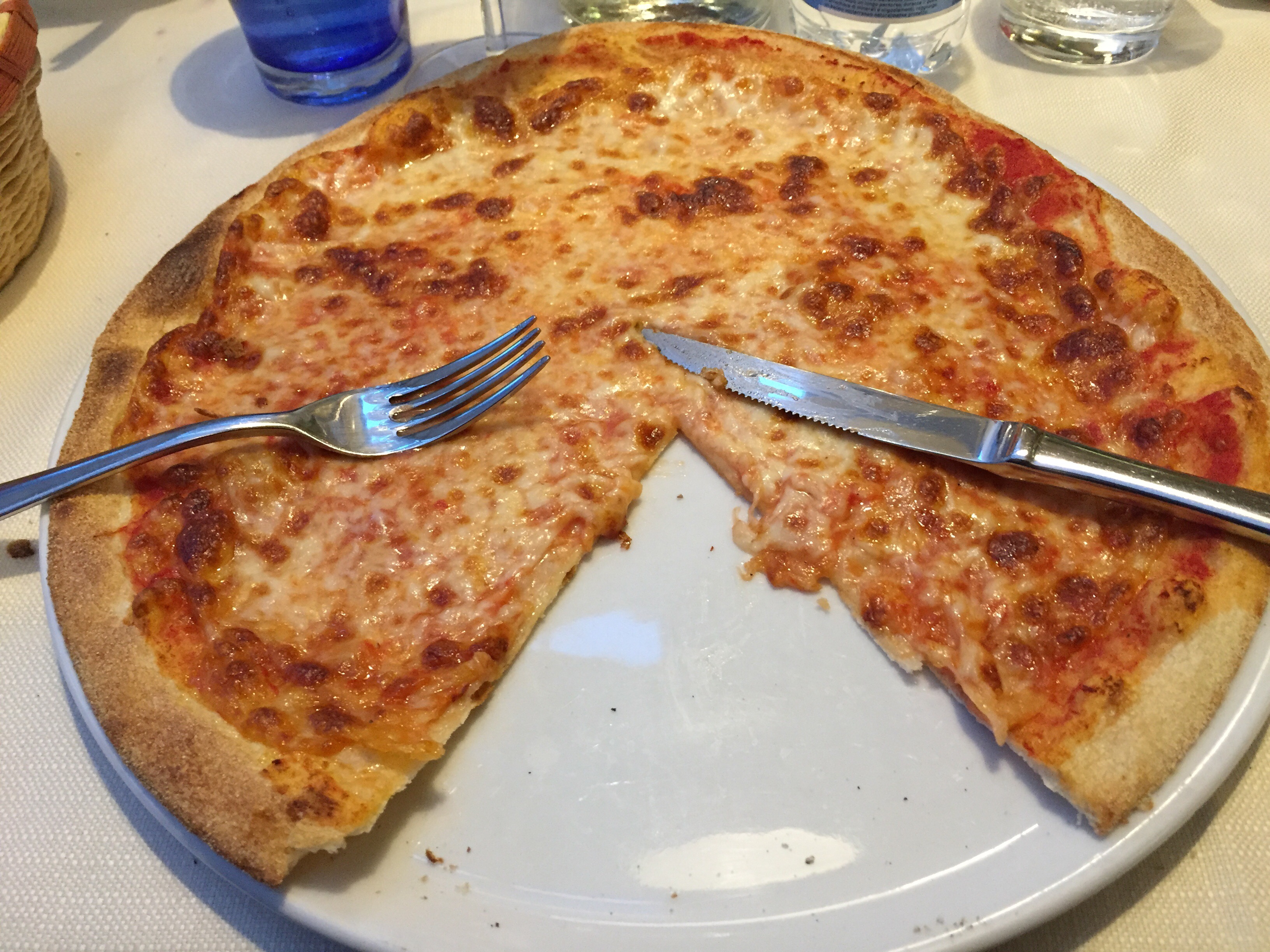 As we entered the town of Jesolo, where we are staying, we found the hotel and walked to dinner. Our group dinner was pizza! I was a little surprised, but holy cow! Not only was it fantastic, but it was a huge pizza for one person.