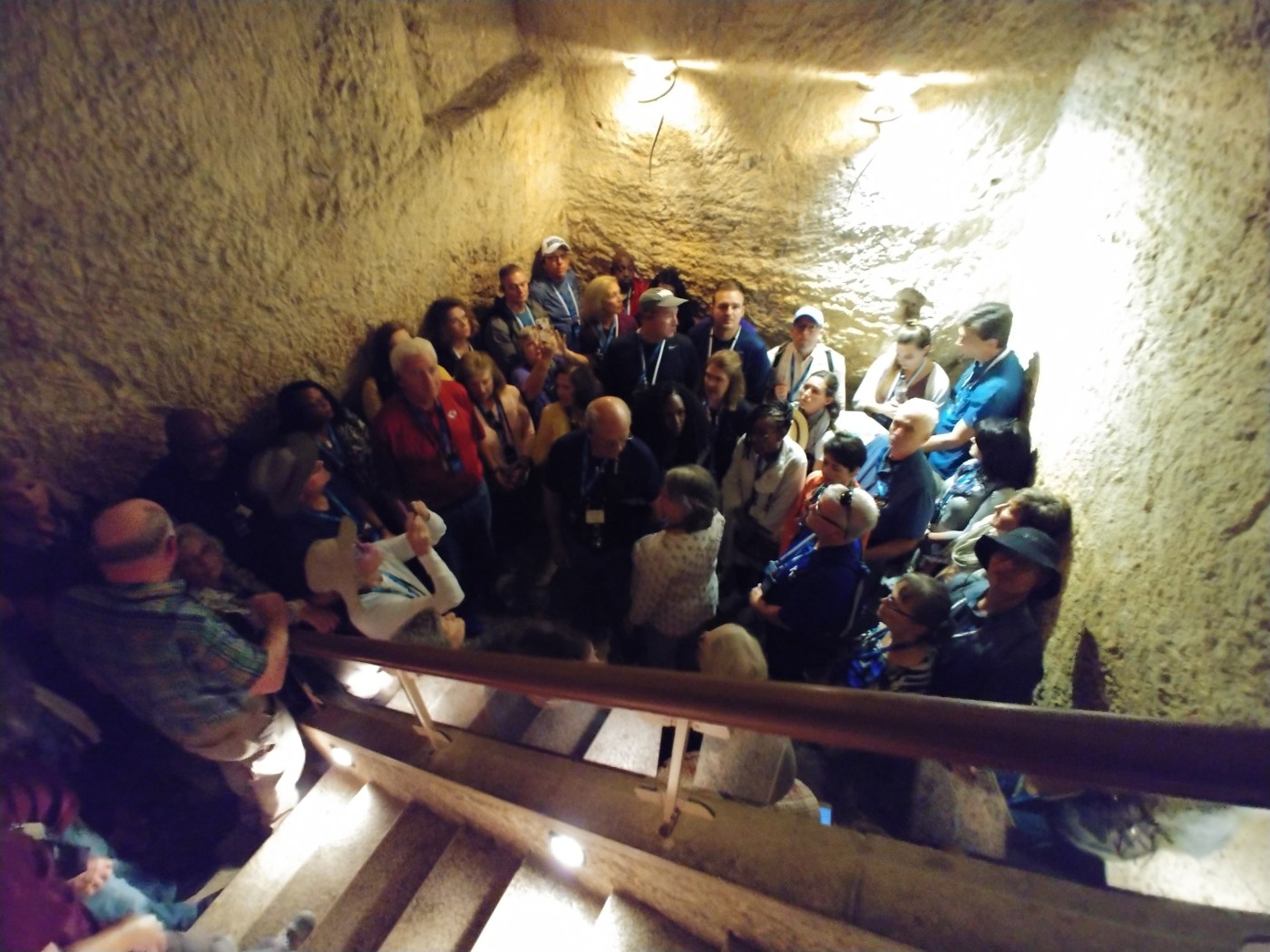 We were able to descend into one of the caves, which thankfully we could do so by steps and not by being lowered in through the hole at the top. It was small, and dimly illuminated by a few lights. I can’t imagine what it would have been like for Jesus in the dark of night.